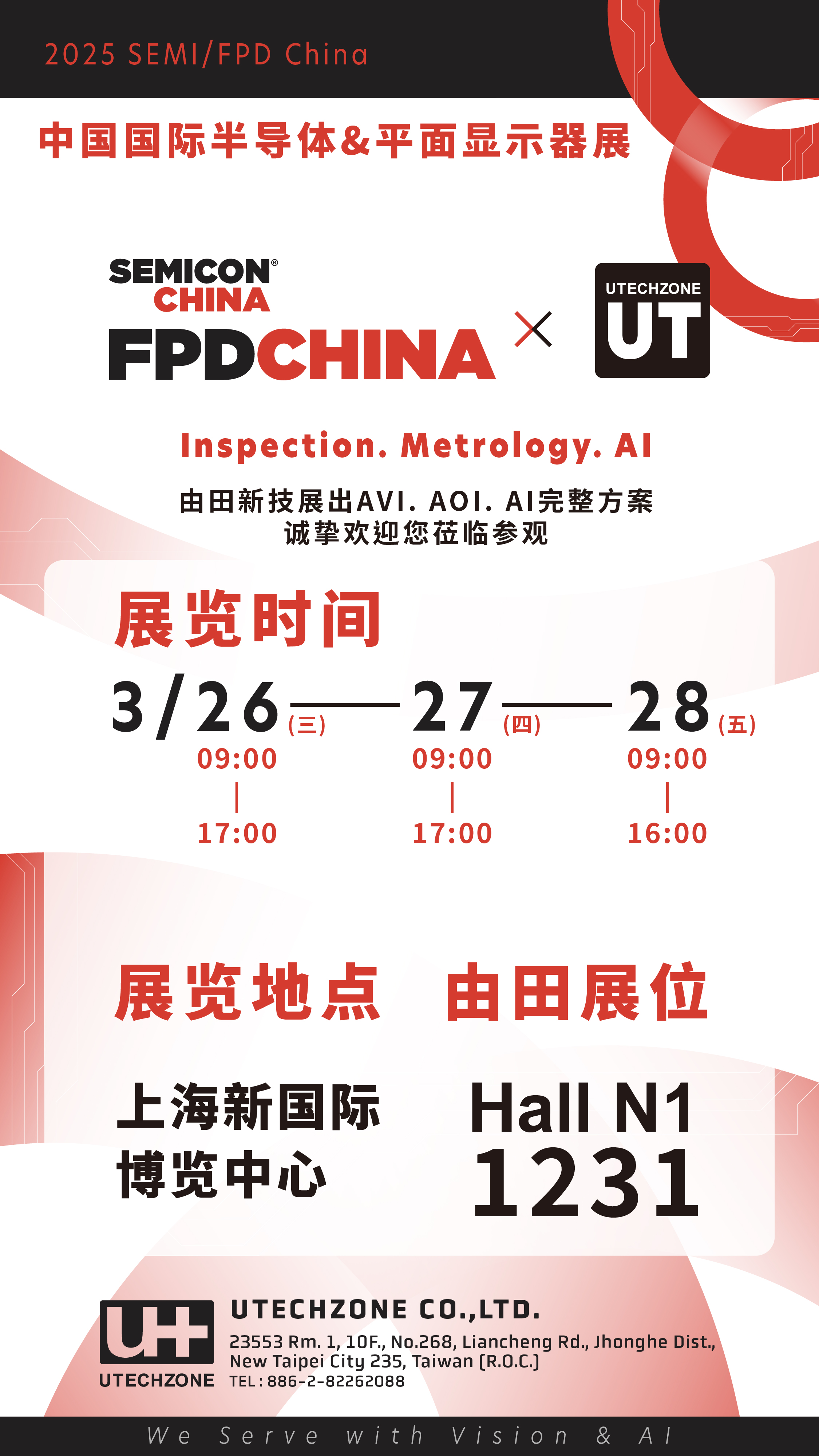 2025 SEMI/FPD China 中国国际平面显示器展 (3/26~28),由田摊位号 N1 1231,欢迎莅临参观!