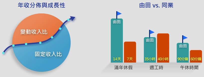 - 由田提供具竞争力的整体薪酬,历年来非经理人年薪平均值均在所有上市上柜公司前25%内!