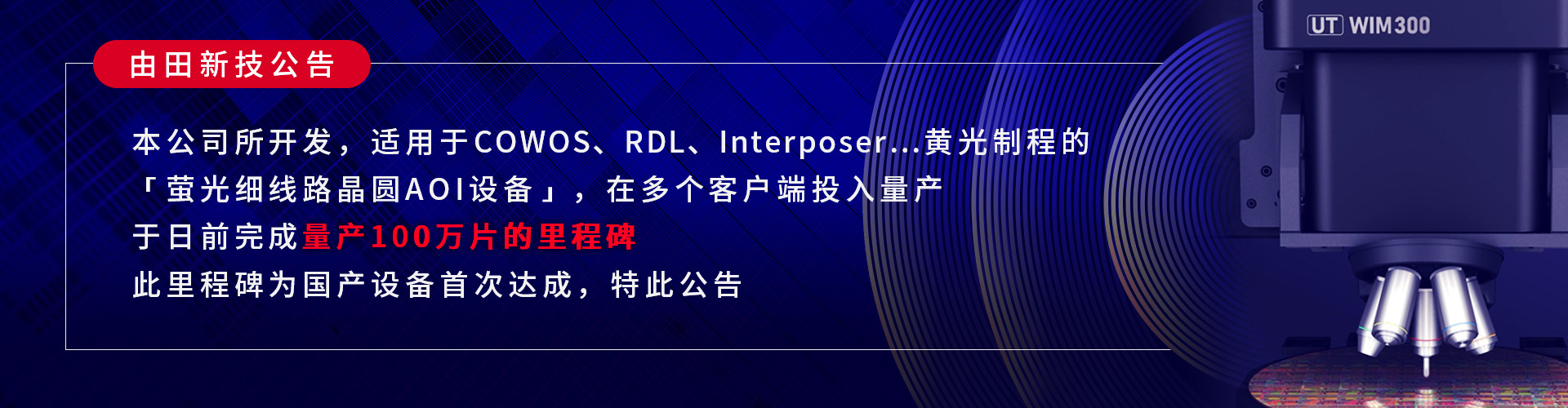 由田新技股份有限公司创立于1992年,于2007年股票在台上柜,代号3455。 总部设于台北,陆续于台南、上海、日本等地设立分公司,为两岸最大自动光学检测(AOI)设备商。 由田累积逾三十年之深厚机器视觉技术,整合「光、软、智、机、电」之五大核心,提供客户最完整的视觉检测解决方案。