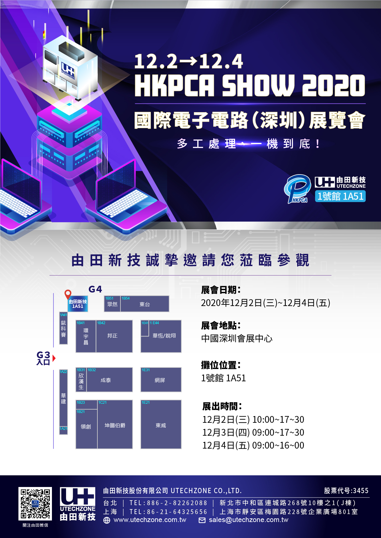 2020 HKPCA Show國際電子電路(深圳)展覽會,由田攤位號 1A51,歡迎蒞臨參觀!