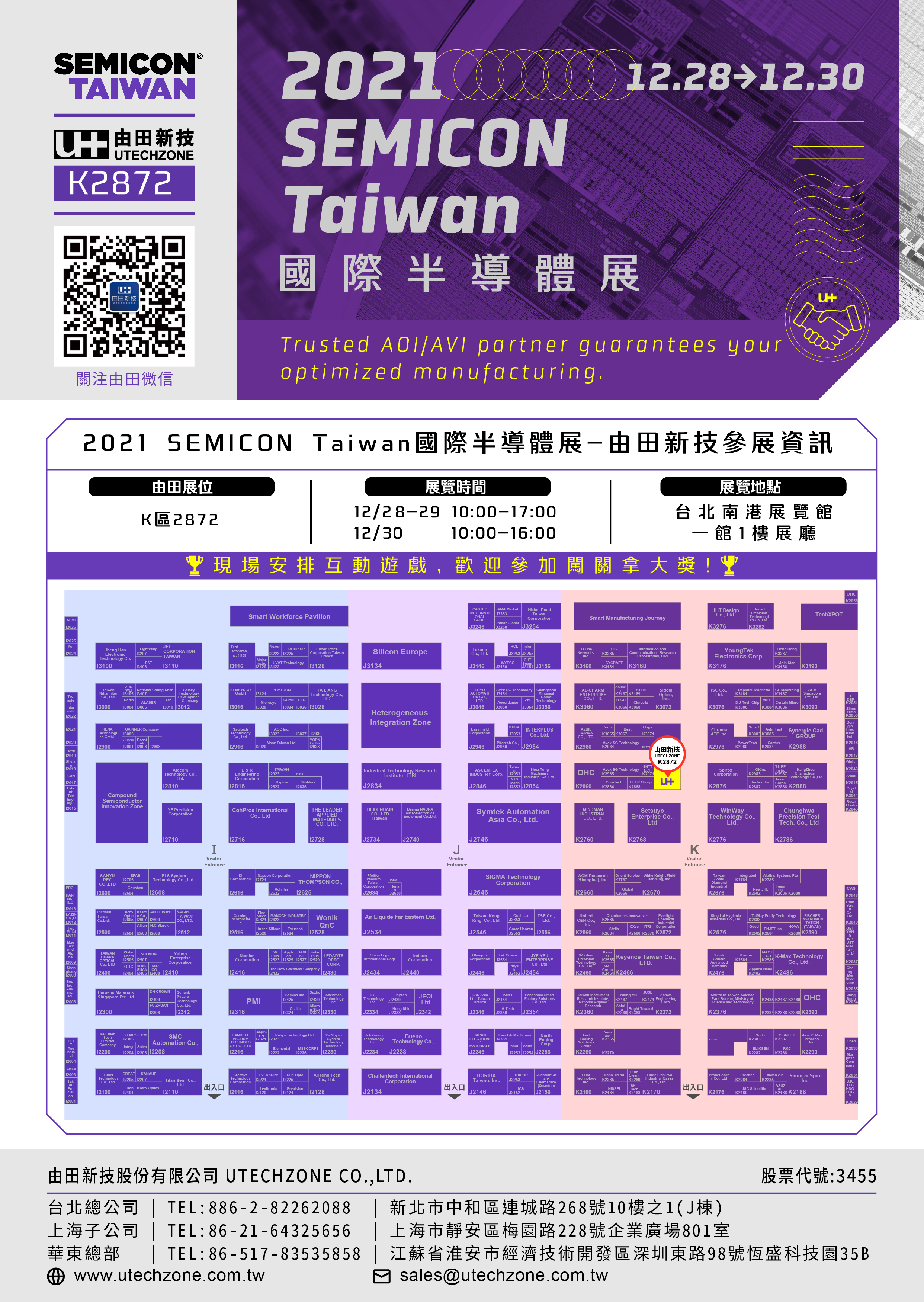 2021 Semicon Taiwan,由田攤位號 K2872,歡迎蒞臨參觀!