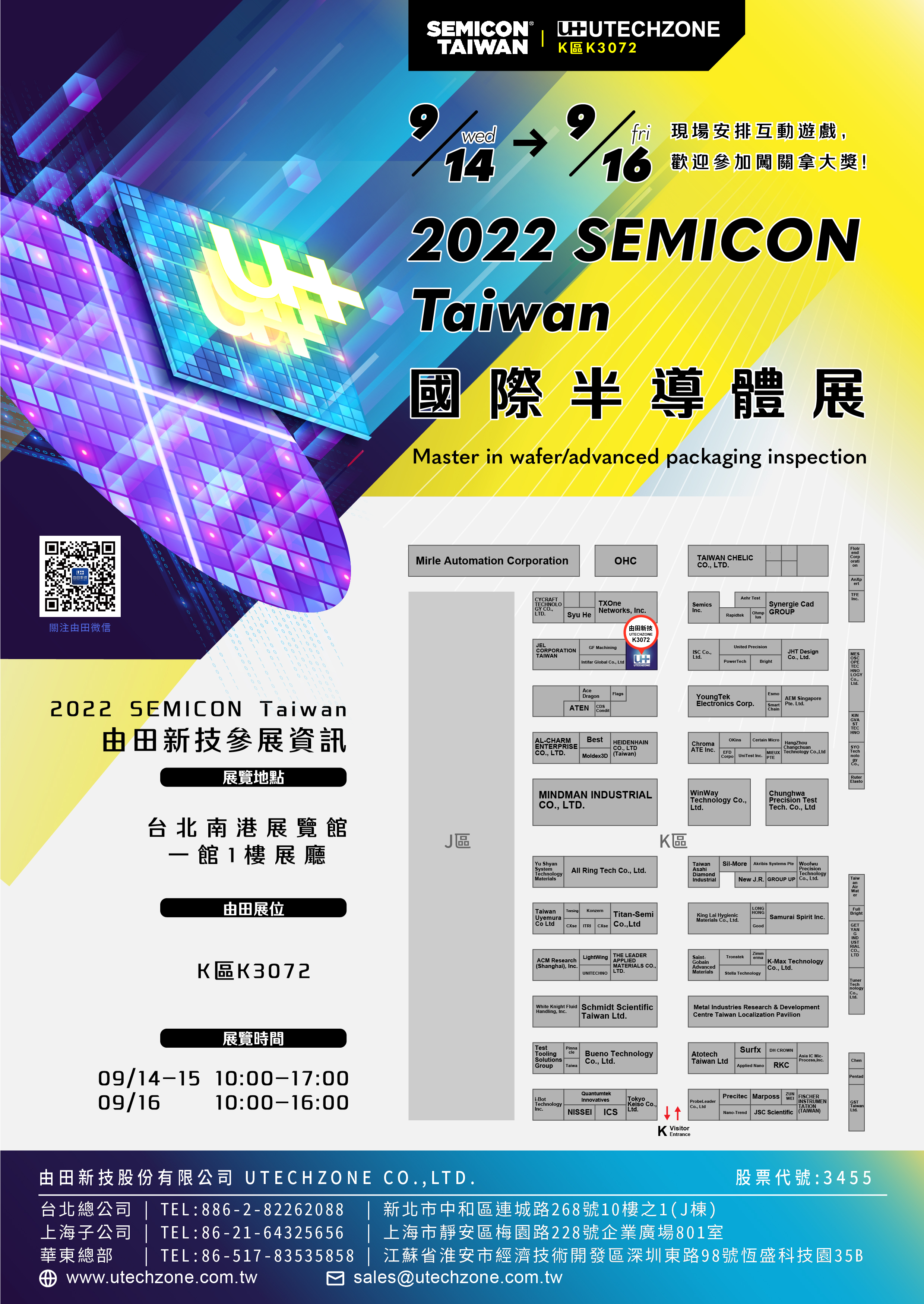 2022 Semicon Taiwan,由田攤位號 K3072,歡迎蒞臨參觀!